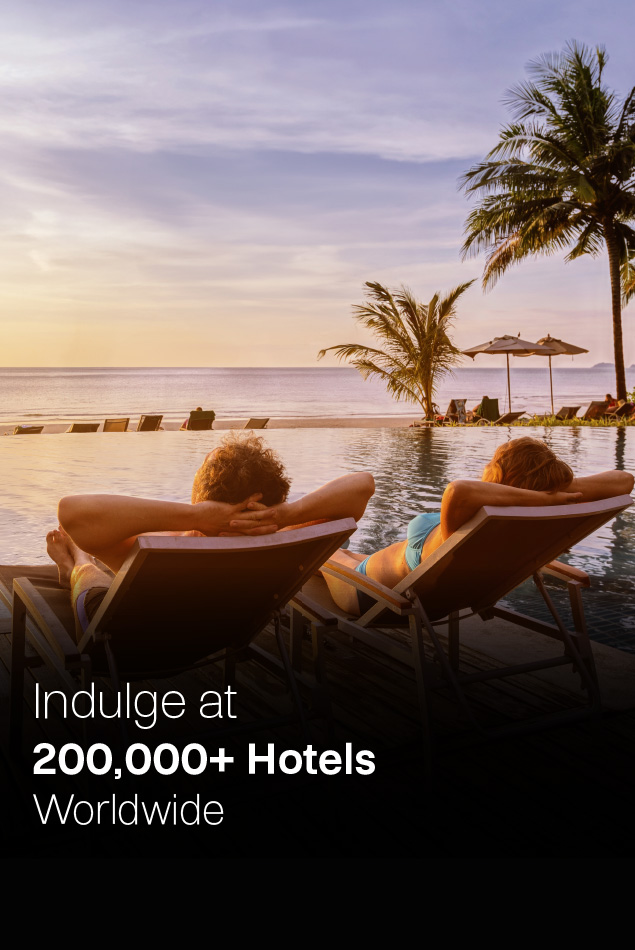 Access 600+ Airlines, 200,000+ Hotels, up to 1,200 Lounges Worldwide & Free Luggage with up to 30 Airlines